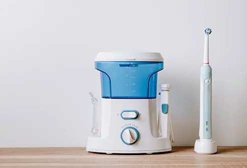 Flossing with braces is tricky and it adds some time to your nightly hygiene routine but the results are healthier teeth and gums. First start with a piece of waxed floss that is at least 18 inches long. This way you can use a clean piece of floss for each tooth. Next, thread the floss under the wire. Wrap it around the index fingers to keep it taut. Move the floss up and down in between the tooth on one side and up towards the gum line. Repeat the process for the tooth on the other side. Carefully pull the floss out and repeat until all teeth are flossed. A floss threader can also be used to make the threading easier. A Waterpik or other brand of water flosser with a tapered tip is helpful at cleaning hard to reach spots and makes your mouth feel fresh.